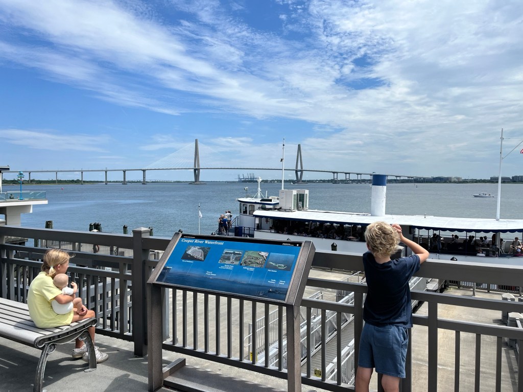Play at the other Waterfront Park (in Mt. Pleasant) – This is a beloved park right under the beautiful Ravenel Bridge . It was even crowded at 10 am on a Thursday morning. Not only is the park sprinkled with sea-inspired art and historical markers, but it has a unique playground and a 1250-foot pier.