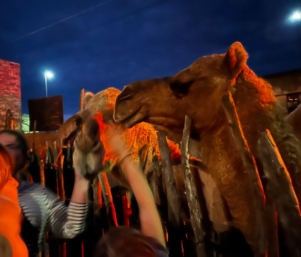 Explore the live nativity, down the narrow streets to faint sounds of ancient music, savoring the sights and smells. Immerse yourself in the din of the marketplace; surrounded by the revelers in the tavern, shouted insults to and from the Roman oppressors, merchants, craftspeople, animals of all kinds, taxpayers, and beggars all seeking money, or position, or revenge.