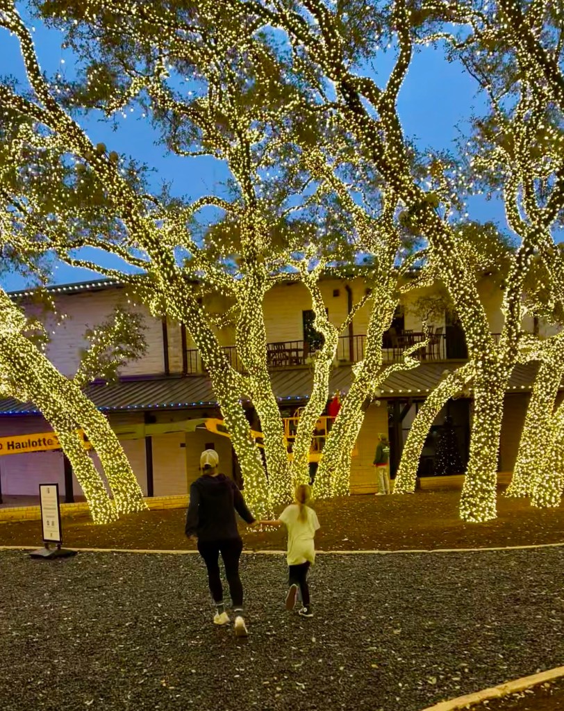Go ice skating, peruse the market, listen to festive music, walk the trail of lights, and/or attend a special event such as story time on the ice. This rink is my kids’ top choice, and it’s one of the biggest temporary ice skating rinks in Texas. Check the link for prices and hours.