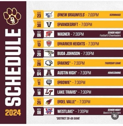 Every Friday night, there’s an opportunity to cheer on local students, fill your belly with burgers and popcorn, and enjoy entertaining marching band shows as well as dance performances. Here’s a list of all HS football schedules within the area, plus the Dripping Springs schedule below!